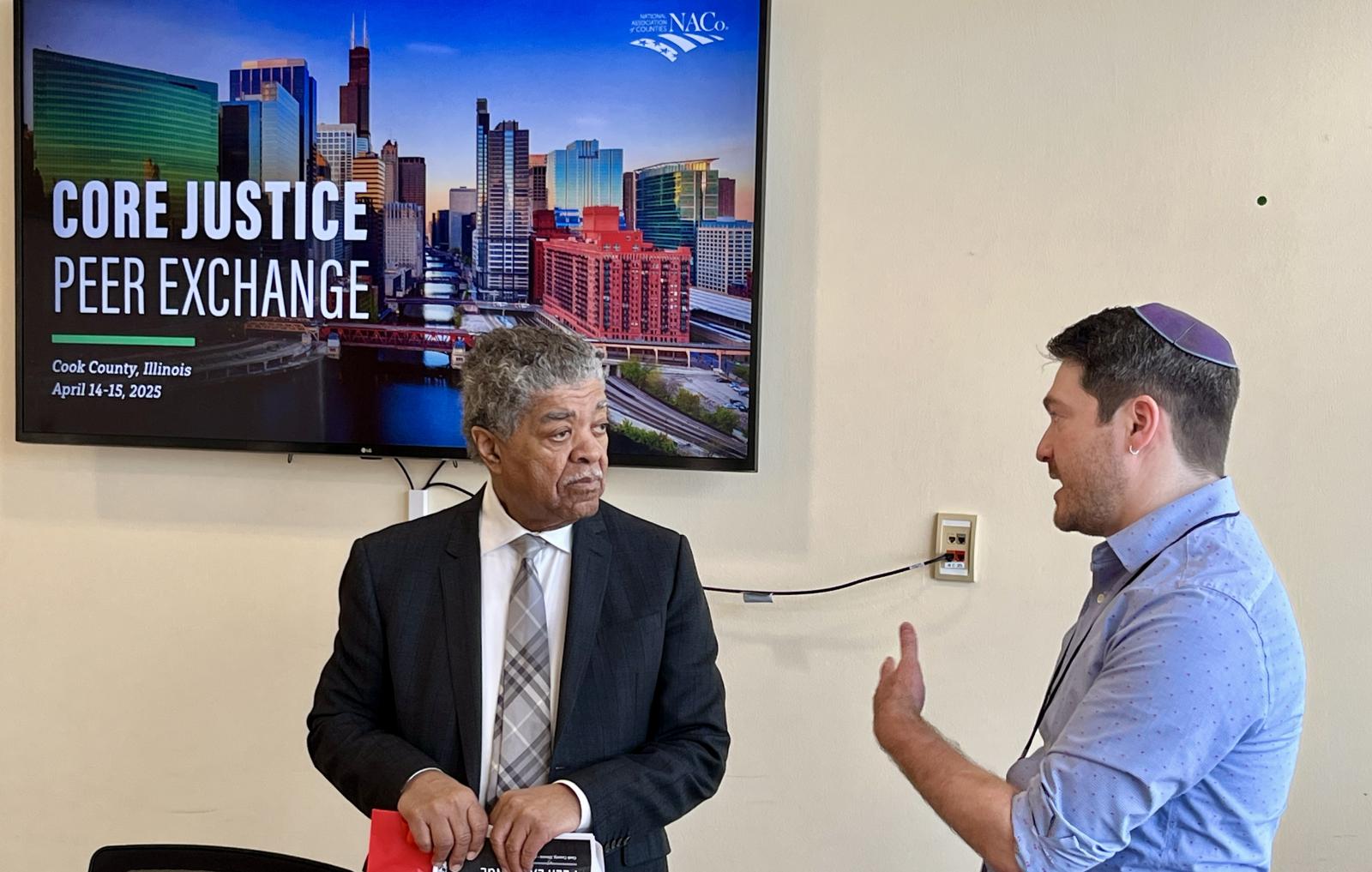 Chief Judge Timothy C. Evans welcomed a cohort of county leaders from across the country, Monday, for a National Association of Counties (NACo) peer exchange visit to Cook County. The visit marks the third and final in-person meeting for the CORE Justice Network, a program focused on empowering county leaders to identify and eliminate disparities in the local justice system.